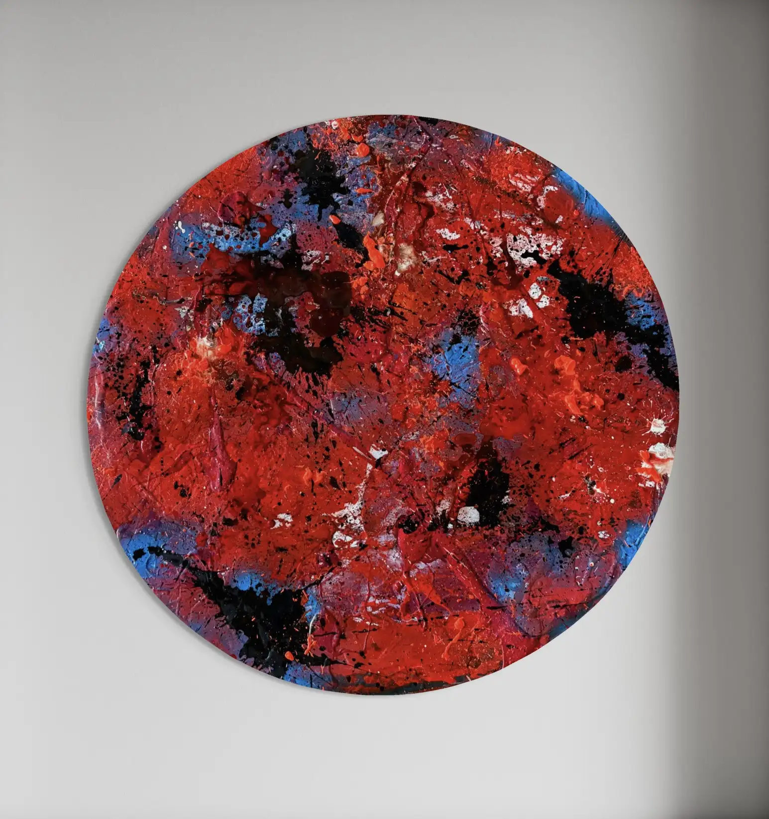 Opera realizzata su tela circolare con colori acrilici, vernice, gesso e resina biologica