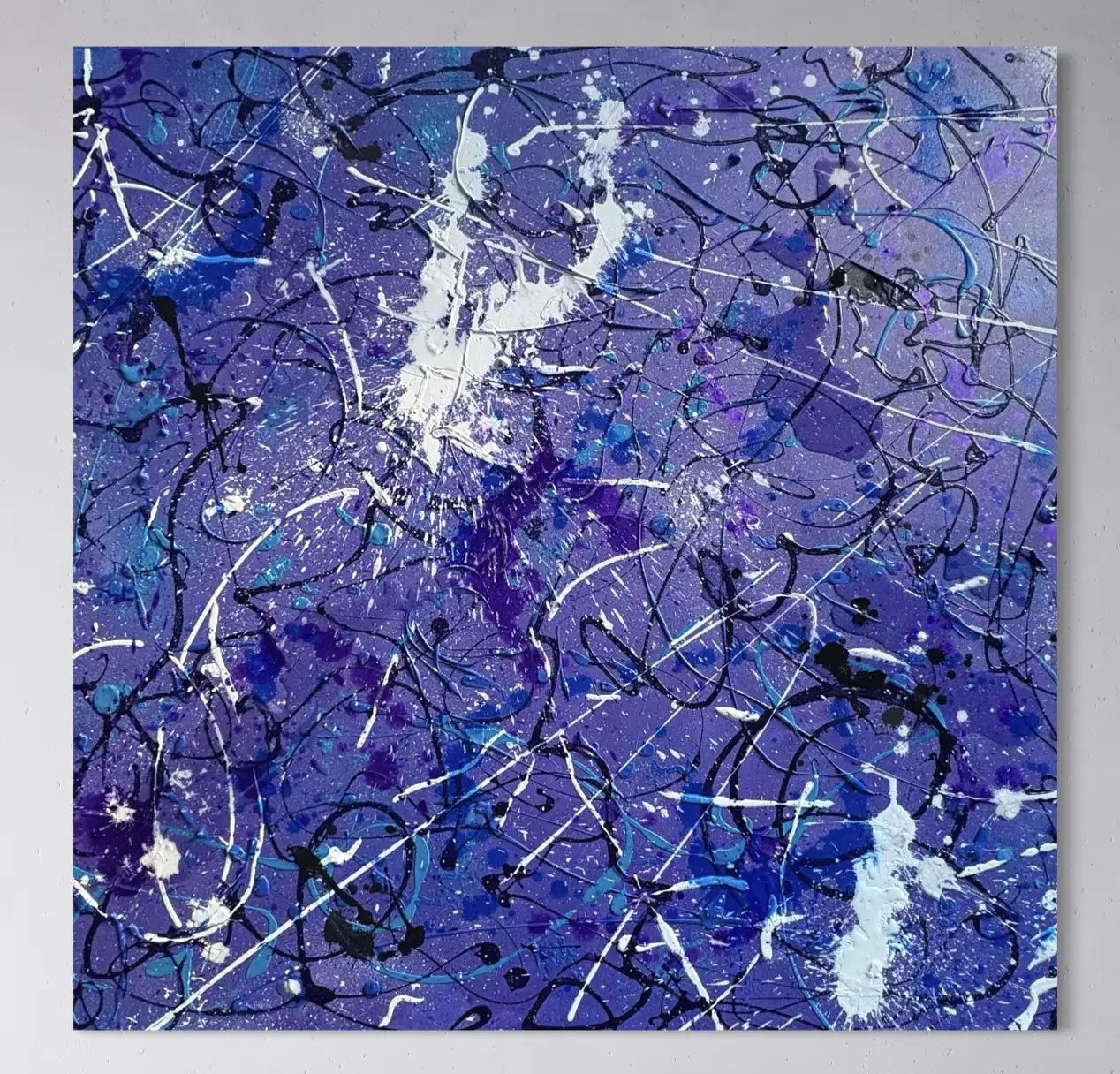 Opere realizzate su tele in cotone, con colori acrilici fluo, vernice, gesso e resina biologica